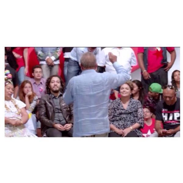 Durante a reta final dos programas da propaganda eleitoral gratuita, Dilma mostrou imagens de um discurso do ex-presidente Lula, e ela aparece acompanhada de Jean Wyllys e de uma mãe de santo.